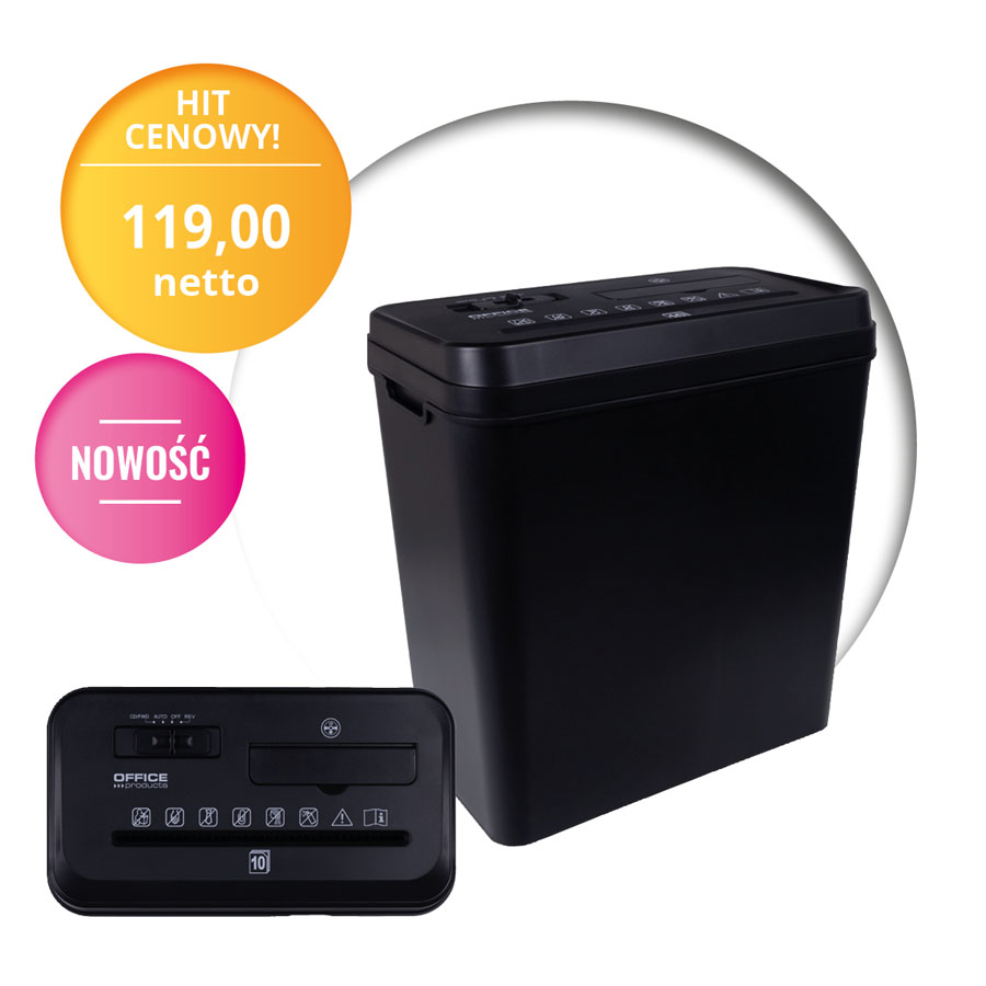 niszczy 10 kartek (ścinki 4 x 38 mm), poziom bezpieczeństwa DIN 66399: P-4 (36K540X)