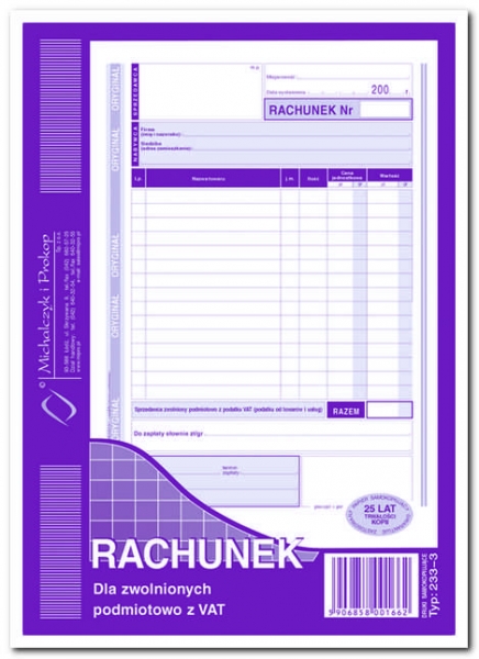 - wykonany z surowców najwyższej jakości na papierze offsetowym lub samokopiującym