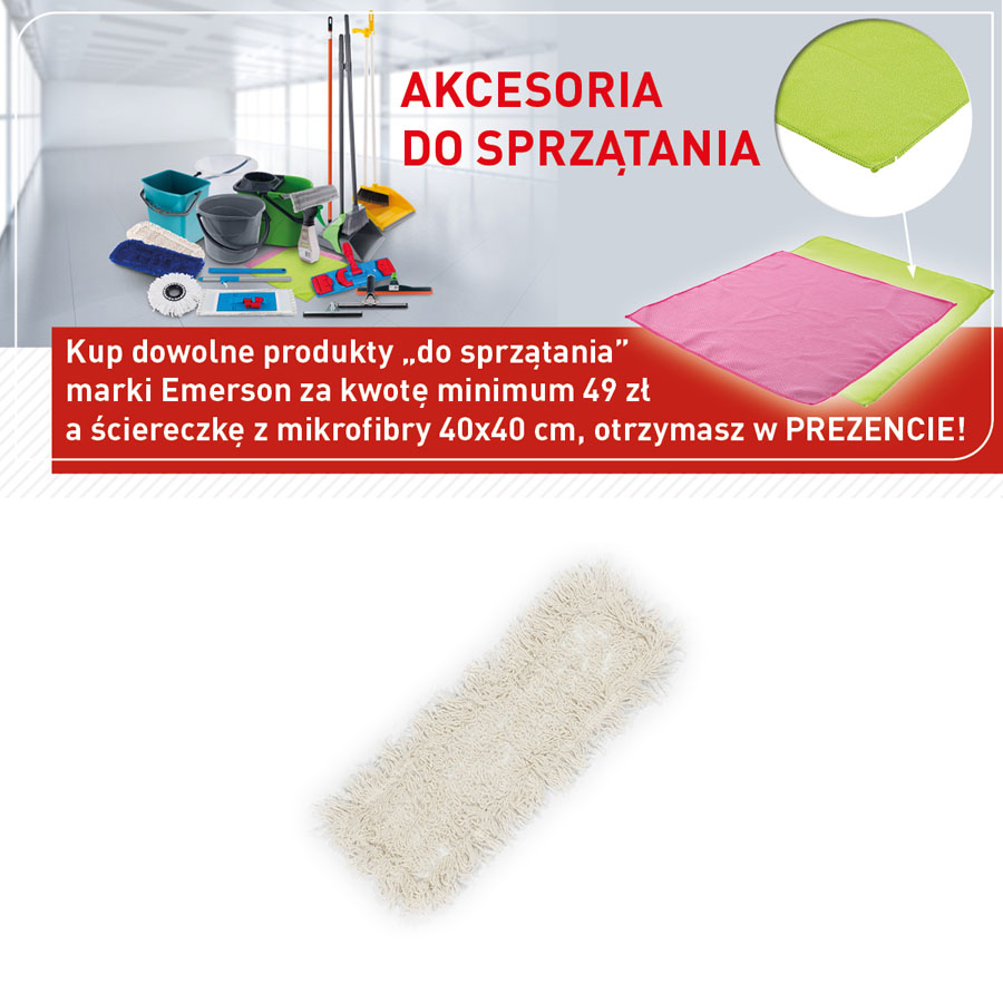 jm.: szt Kup dowolne produkty do sprzątania marki Emerson za kwotę minimum 49 zł a ściereczkę z mikrofibry 40x40 cm, otrzymasz w PREZENCIE!