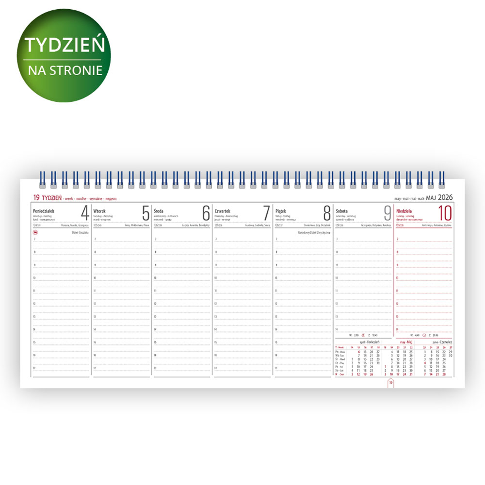 - układ: tydzień na stronie