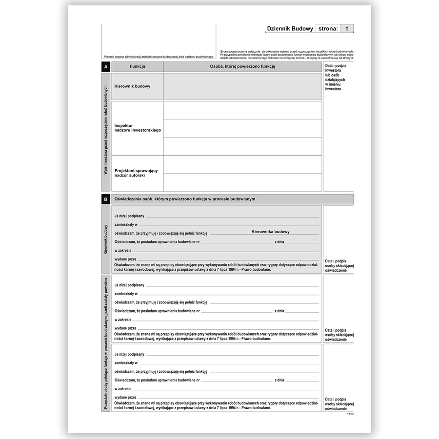 Dziennik budowy A4 samokopia