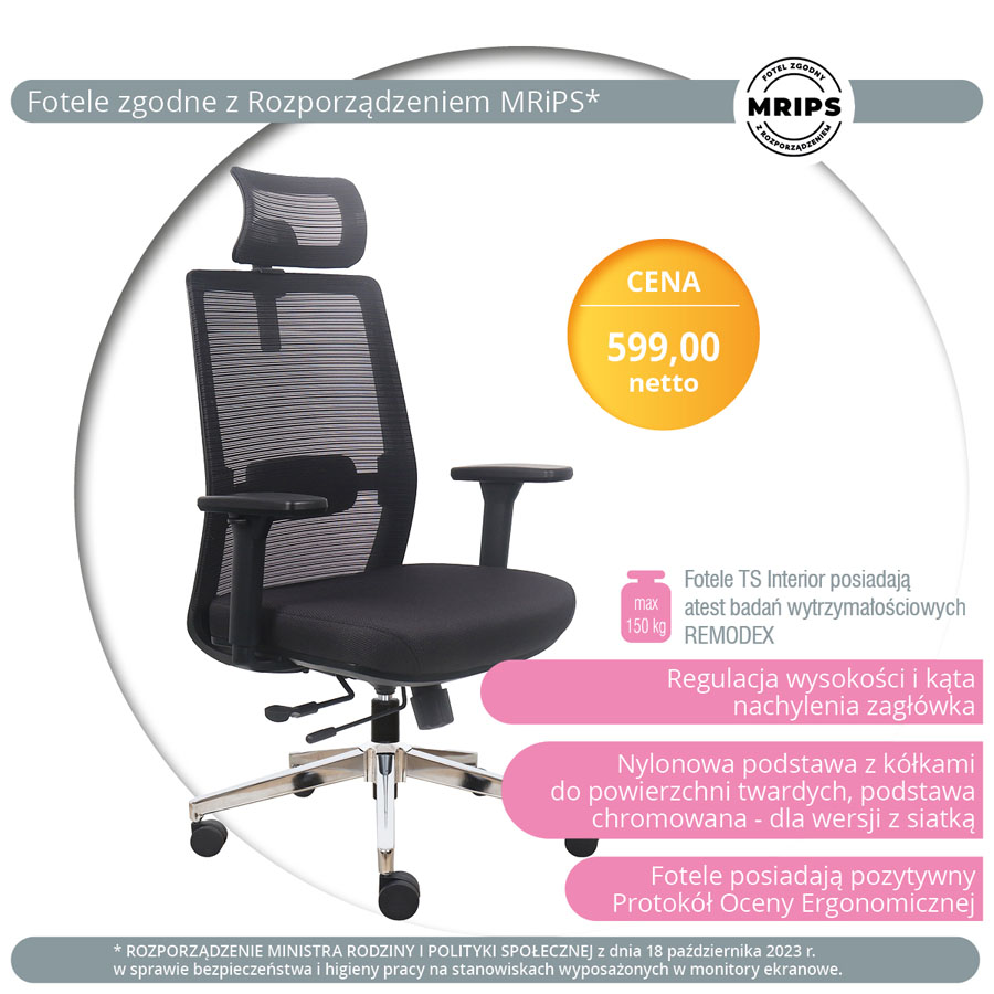 siatka / tkanina czarna, regulowane podłokietniki (93K106X)
