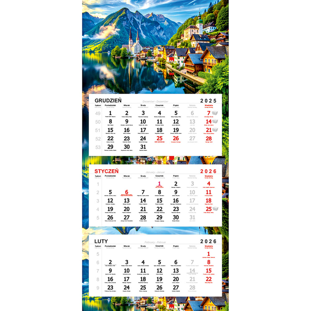 - 3-języczne kalendarium (zaznaczone święta państwowe i kościelne)