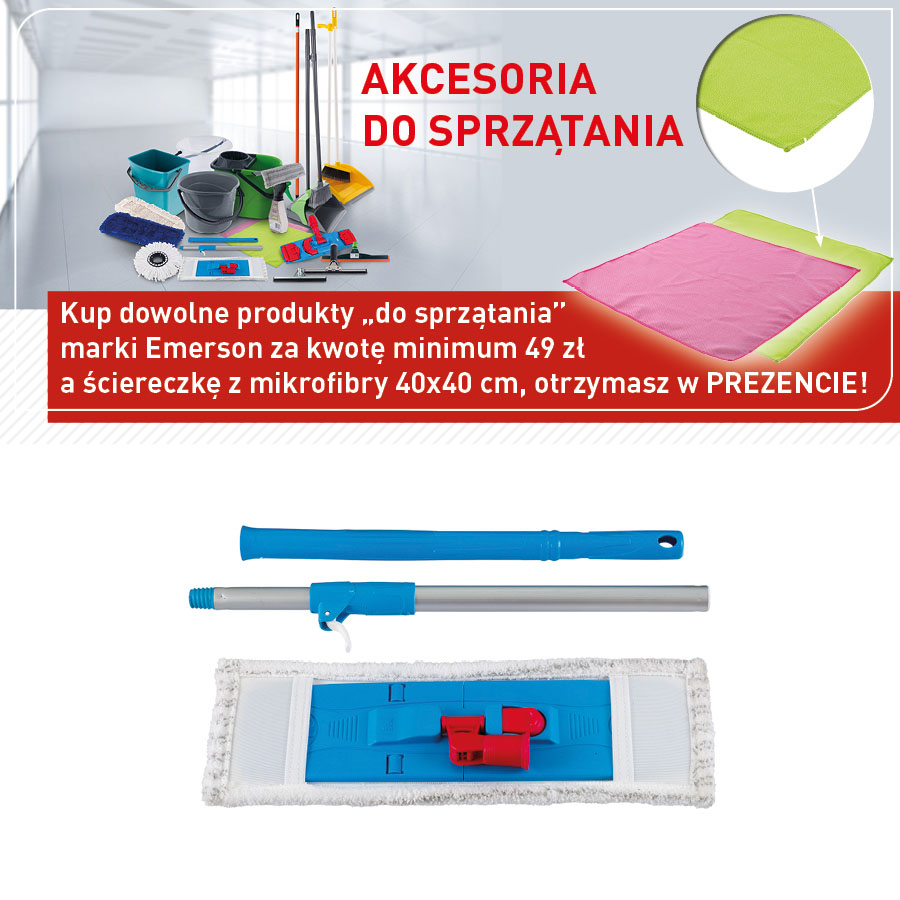 jm.: kpl Kup dowolne produkty do sprzątania marki Emerson za kwotę minimum 49 zł a ściereczkę z mikrofibry 40x40 cm, otrzymasz w PREZENCIE!