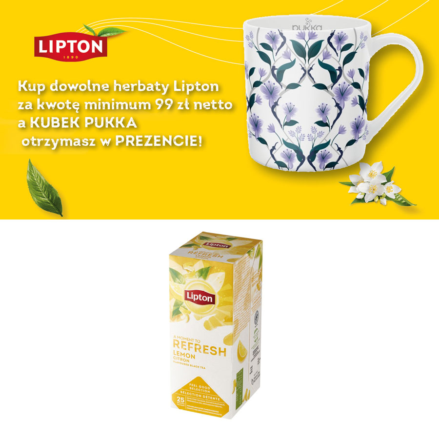 jm.: opakowanie Kup dowolne herbaty Lipton za kwotę minimum 99 zł netto a kubek PUKKA otrzymasz w PREZENCIE!