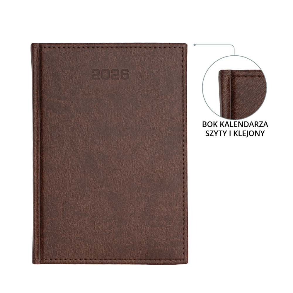 - brulionowe szycie i klejenie sprawia, że kalendarz wygodnie leży otwarty i nie zamyka się samoczynnie