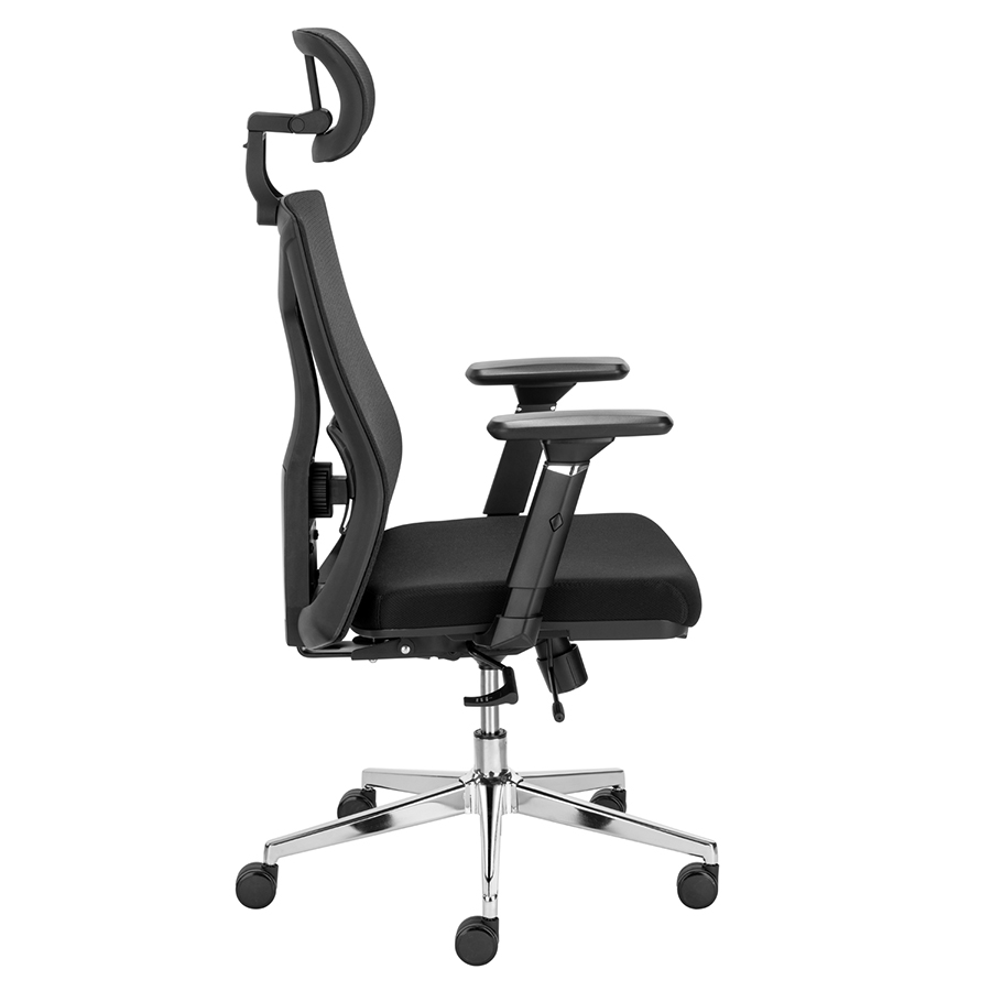 - OPARCIE I SIEDZISKO: regulacja wysokości oparcia, oparcie tapicerowane elastyczną siatką, dopasowującą się do pleców użytkownika natomiast siedzisko tapicerowane tkaniną i wytrzymałą pianką wtryskową, odporną na odkształcenia