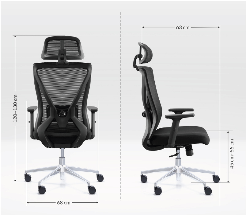 - stabilna 5 ramienna podstawa jezdna (nylonowa lub chromowana)