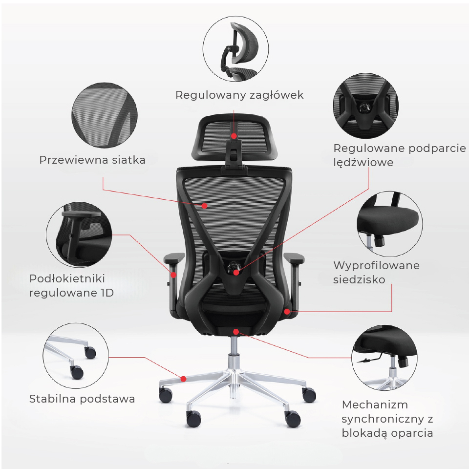 - mechanizm synchroniczny z blokadą oparcia w pozycji do pracy